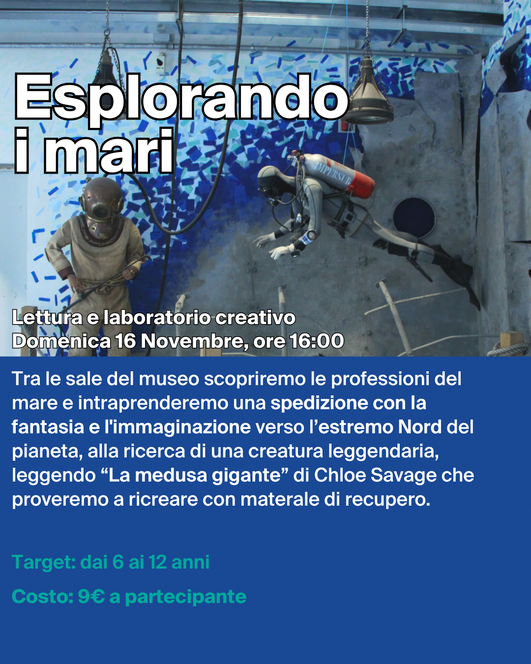 Tra le sale del museo scopriremo le professioni del mare e intraprenderemo una spedizione con la fantasia e l'immaginazione verso l’estremo Nord del pianeta, alla ricerca di una creatura leggendaria, leggendo “La medusa gigante” di Chloe Savage che proveremo a ricreare con materale di recupero.