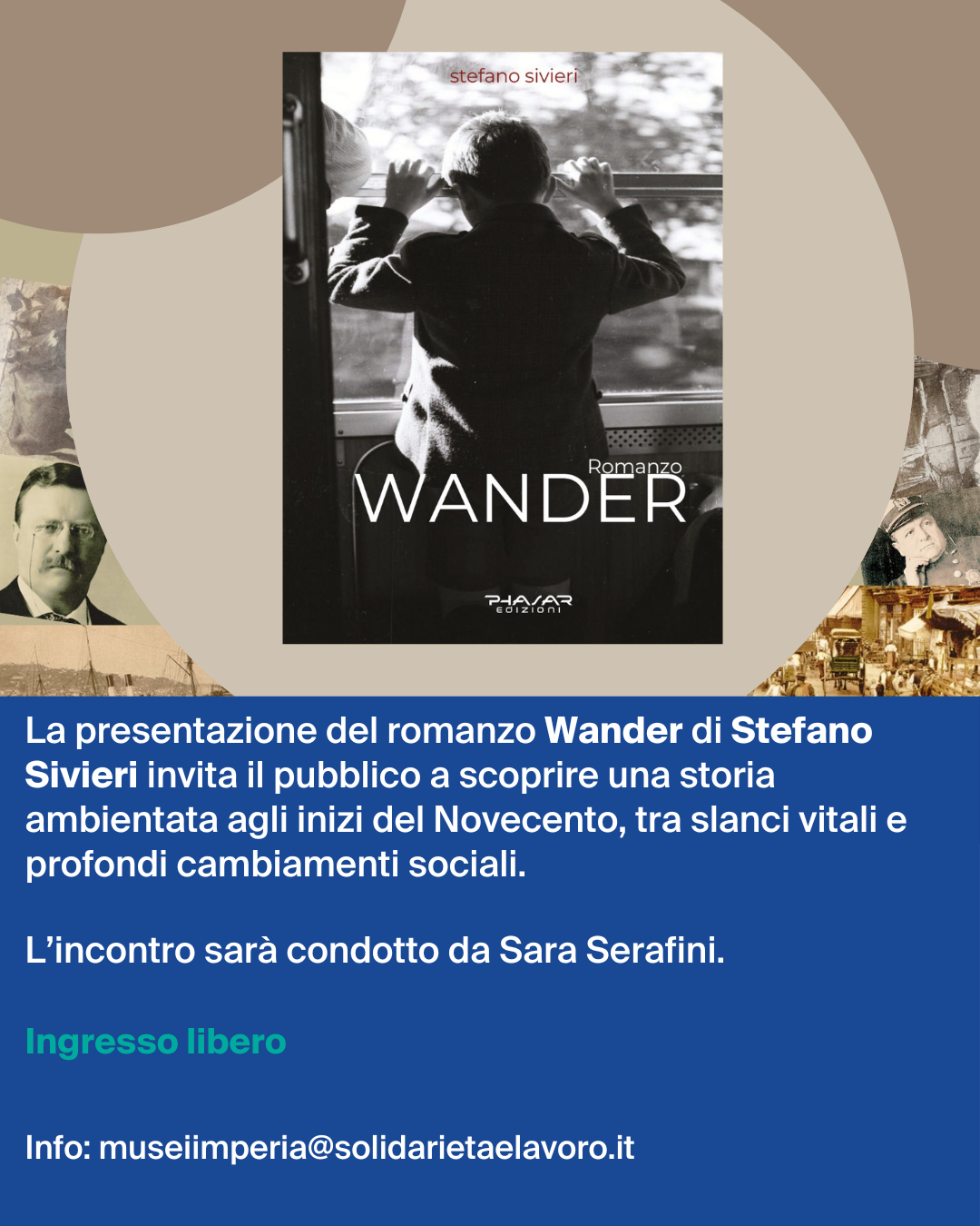 Venerdì 11 luglio, alle ore 17:00, presso il Museo Navale di Imperia, si terrà la presentazione del romanzo Wander di Stefano Sivieri, evento collaterale alla mostra fotografica 60 anni di click – Un uomo in viaggio.